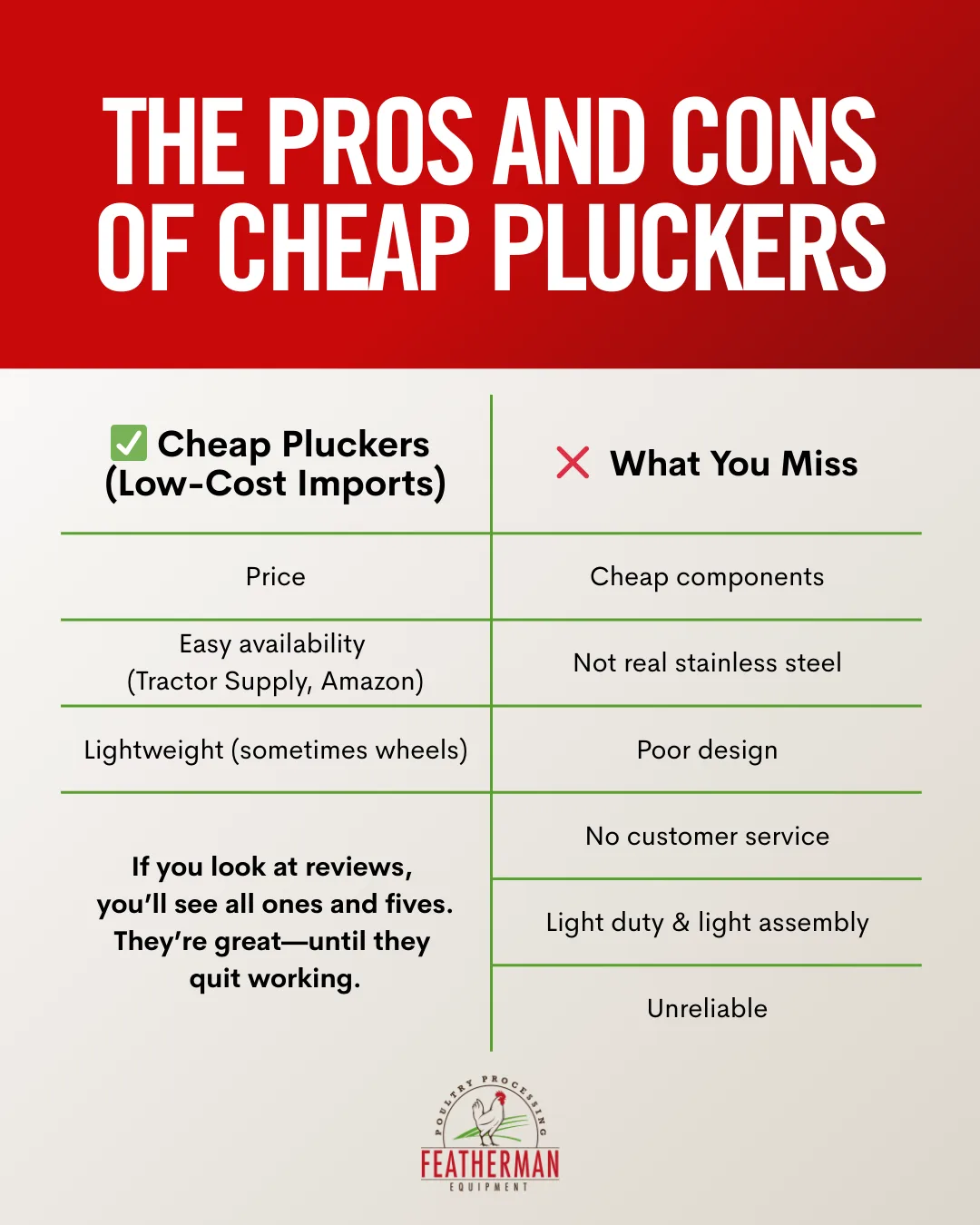 First, let me say: I love that the entry-level doors have been blown open by cheap pluckers! It’s truly a blessing to many homesteaders and small farmers.