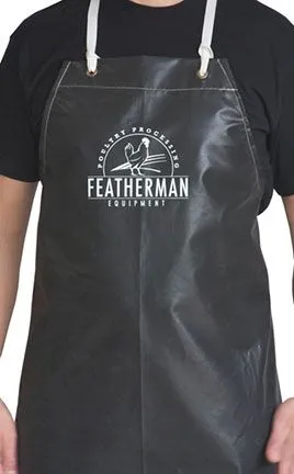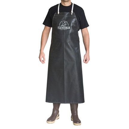 Stay clean and protected during poultry processing with the Featherman Heavy-Duty Butchering Apron. Made from durable, waterproof vinyl with a moisture wicking lining, this apron shields against water, feathers, and other processing messes, leaving you dry and comfortable. Hemmed edges are tear resistant and durable string ties have metal grommets. Watch this video featuring our apron here.