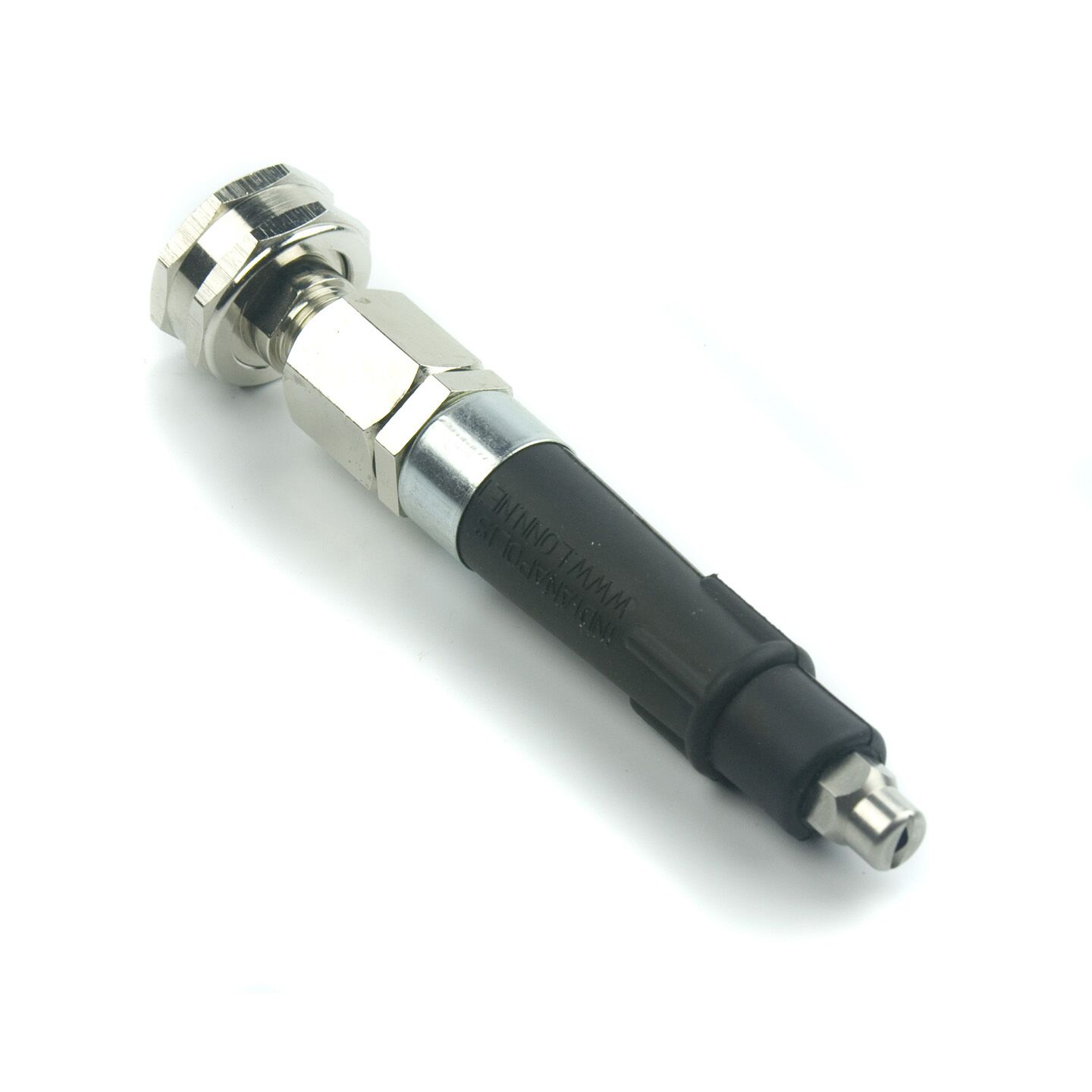 Heavy duty water nozzle for poultry processing. Perfect over each processing station. Simply depress rubber nozzle or squeeze the grip trigger to activate water spray.