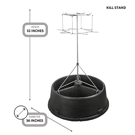 Efficient, humane, and easy-cleaning, our stainless steel Kill Stand 8 with Cones speeds up the processing and eases the handling of birds at the front end of your processing line. Insufficient bleed-out time is a bottleneck issue that can really slow down processing, our kill cone stand included in this small scale poultry processing equipment kit helps mitigate this.
