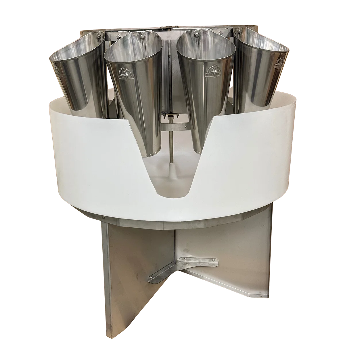 The Featherman Kill Stand 18 with Cones takes the bottleneck out of bleed-out. Efficient, humane, and easy-cleaning, our stainless steel kill cone stand speeds up the processing and eases the handling of birds at the front end of your processing line. The blood trough keeps the workspace clean and captures blood in a bucket below making it the fastest, easiest, and most efficient bleed-out station available. Especially designed no back-out cones fit compactly around a swiveling stand of stainless steel and are easy to clean.