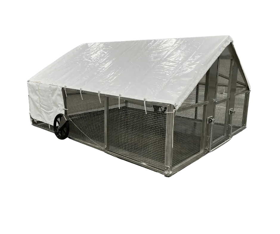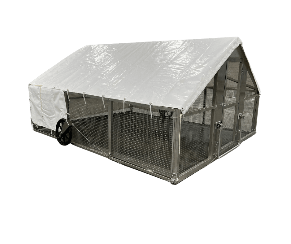 Introducing the Heavy-Duty Tarp for the Featherman Chicken Ship – the perfect accessory to enhance the protection and comfort of your mobile coop. Custom-made to fit the Featherman Chicken Ship, this high-quality tarp withstands the elements while providing your chickens with a secure and shaded environment.