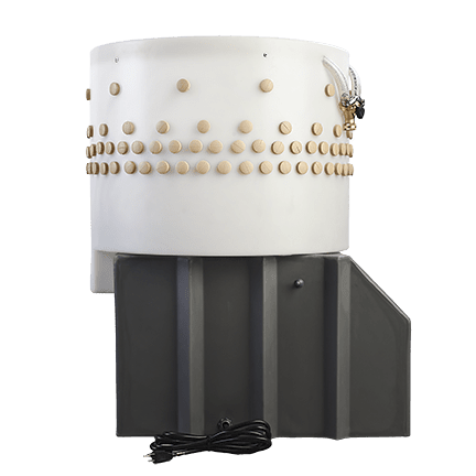 Identical to the Featherman PRO except the Gamebird plucker is packed with 239 fingers spaced tightly together to pluck even the smallest birds. If you are processing quail, dove, or squab, this defeathering machine is for you! These all pluck beautifully with the Gamebird. The soft fingers are gentler on the smaller, thin-skinned, and gun-shot birds. The Gamebird plucker is a must-have piece of equipment for every small game-bird hunter/processor saving both time and energy while maximizing your profits. It also works great for chickens and turkeys! This defeathering machine is capable of plucking 1-50 lb. of quail, dove, squab, pheasant, chicken, or turkey in less than 1 minute! Another notable feature of the Featherman Gamebird plucker is the feather chute. Our chute keeps feathers contained in one spot, offering quick and easy clean-up! The water spray ring gives the birds an even spray of cold water, for a quick feather release and the waterproof ON/OFF switch ensures operation safety.
